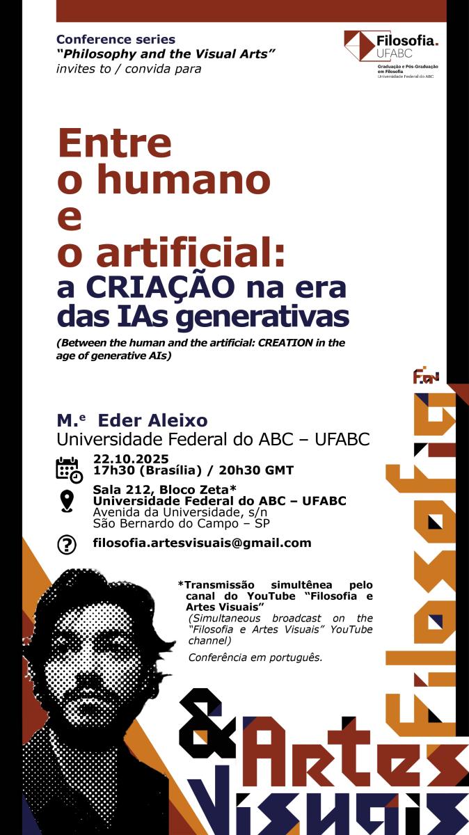 Ciclo de conferências 'Filosofia e Artes visuais': Entre o humano e o artificial: a CRIAÇÃO na era das IAs generativas M.e. Eder Aleixo (UFABC)