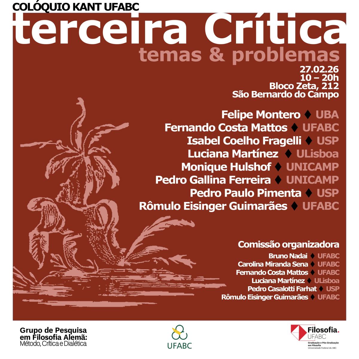 É com prazer que convidamos todos/as interessados/as a participar do Colóquio Kant UFABC de 2026, cujo tema é “terceira Crítica: temas & problemas”.