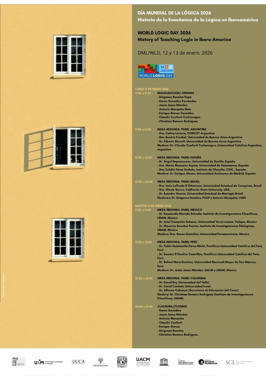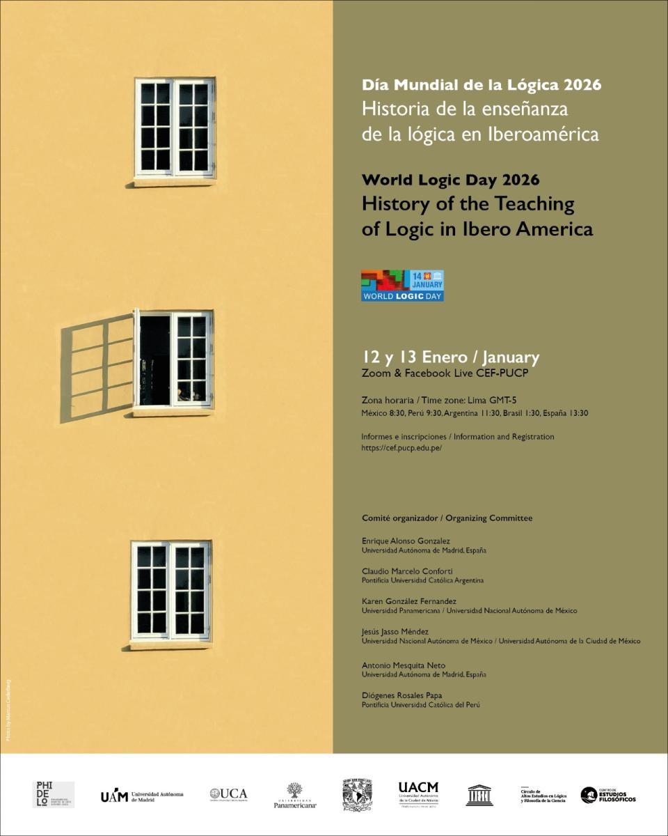 Temos o prazer de anunciar que nos dias 12 e 13 de janeiro de 2026 celebraremos um evento virtual em comemoração ao Dia Mundial da Lógica, organizado em colaboração com colegas ibero-americanos (Argentina, Brasil, Colômbia, Espanha, México e Peru).