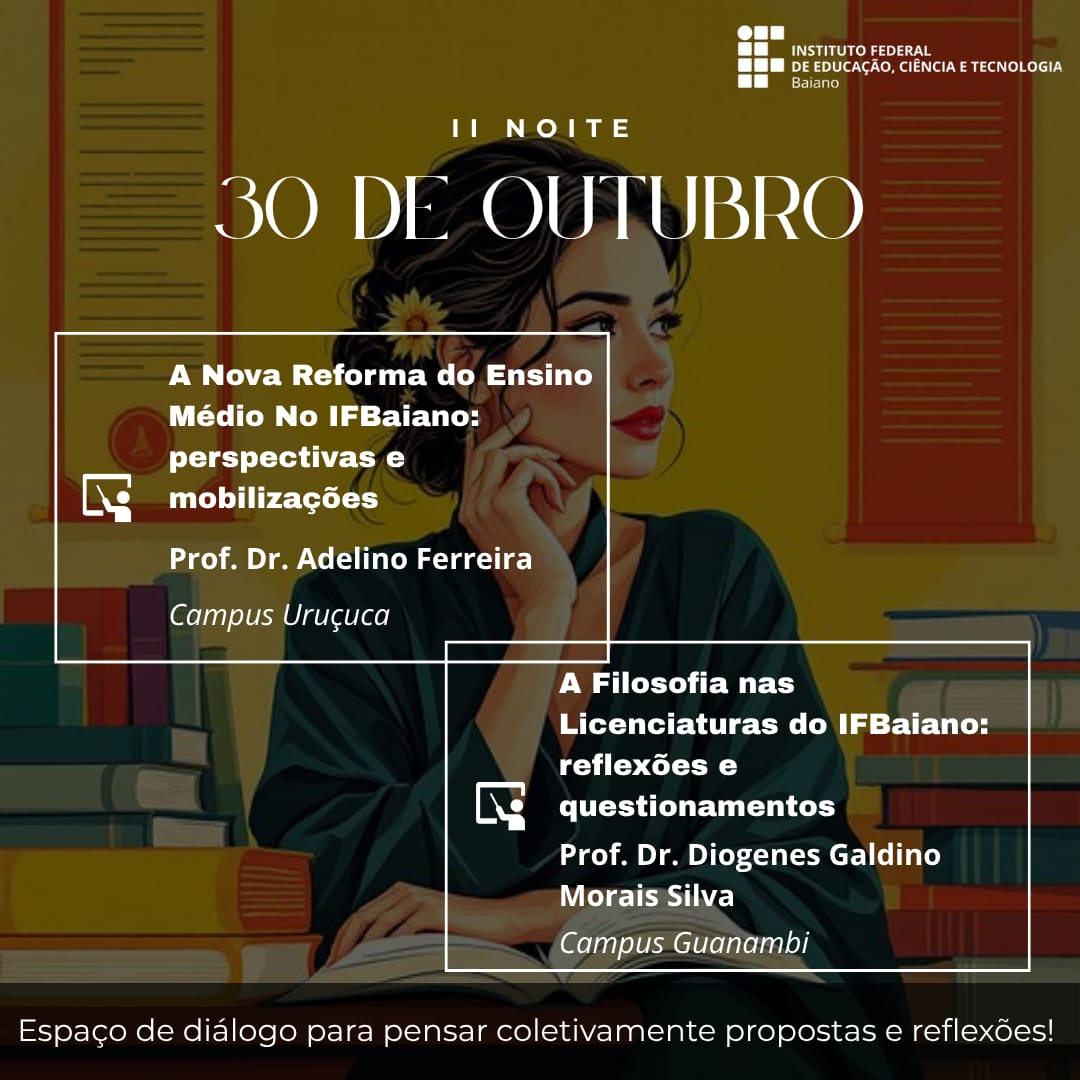 1. "A Nova Reforma do Ensino Médio no IFBAIANO: perspectivas e mobilizações" com o Prof. Dr. Adelino Ferreira, do Campus Uruçuca.