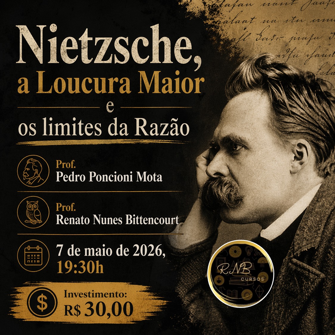 Palestra promovida pela RNB Cursos, 7 de maio de 2026, 19:30h