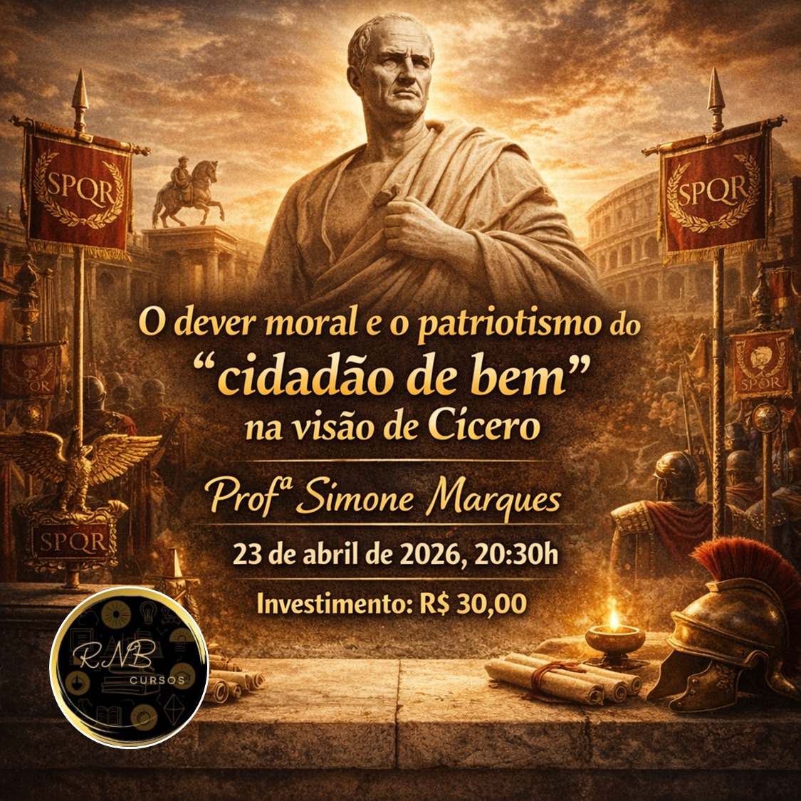 Palestra promovida pela RNB Cursos, 23 de abril de 2026, 20:30h