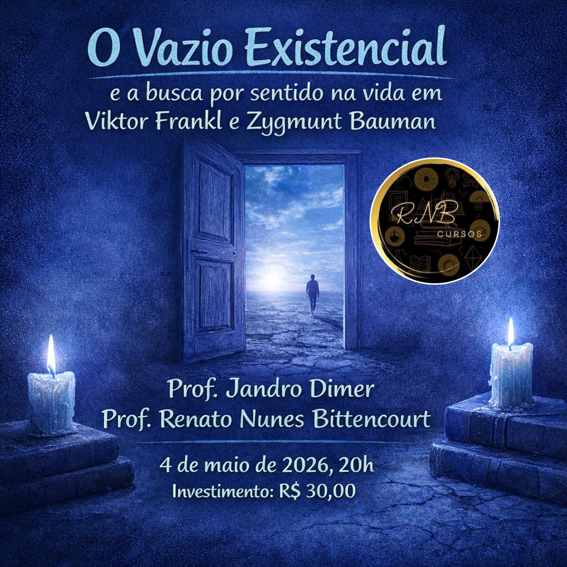 Palestra promovida pela RNB Cursos, 4 de maio de 2026, 20h