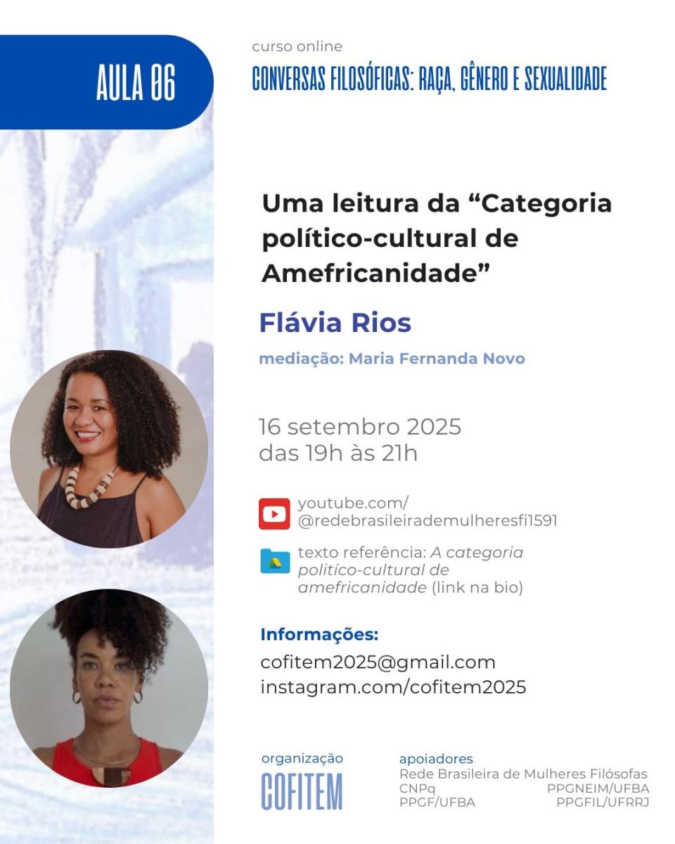 Contando a participação da maravilhosa Flávia Rios (USP), em nosso sexto encontro abordaremos o tema "Uma leitura da 'categoria político-cultural de amefricanidade"