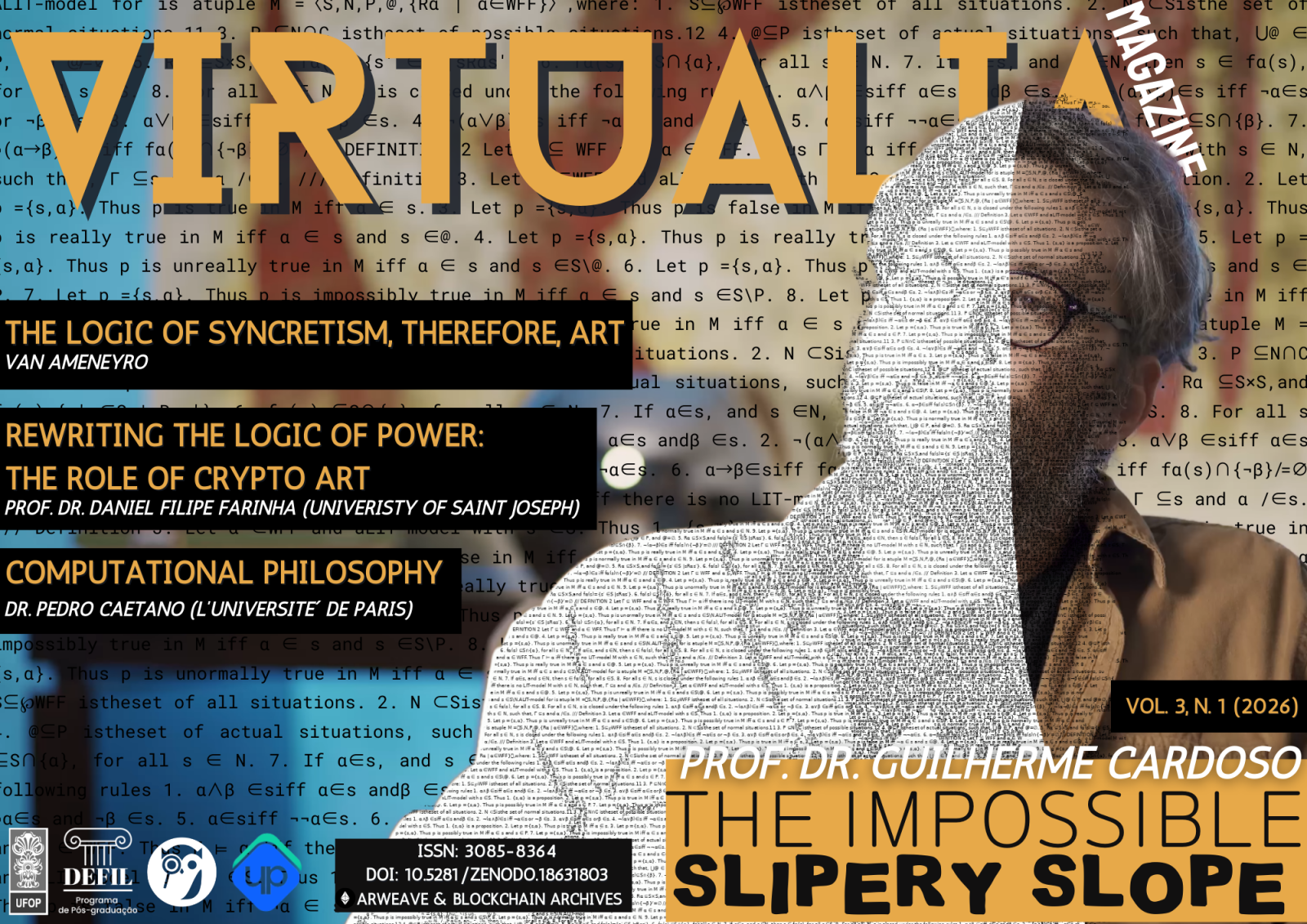 Está disponível a nova edição da magazine Virtualia, vol. 3, n. 1, 2026, vinculada ao GIFLABS, laboratório nascido no seio do PPGFIL da UFOP, e ao Kryptolab, laboratório do Departamento de Ciência da Computação da UFOP. A publicação explora as interseções entre filosofia, arte e tecnologia, reunindo contribuições sobre cultura digital, inteligência artificial, estética e transformações contemporâneas do conhecimento. A edição pode ser acessada pelo site https://virtualiamagazine.blogspot.com/.